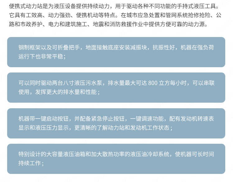 適用于路面搶修、道路施工、市政維護(hù)、保養(yǎng)、園林等工作場景 ;.設(shè)備安裝便捷,搬運(yùn)簡便,適應(yīng)性強(qiáng),可輕松解決破碎、切削、分裂、打樁、壓實(shí)等施工項(xiàng)目。